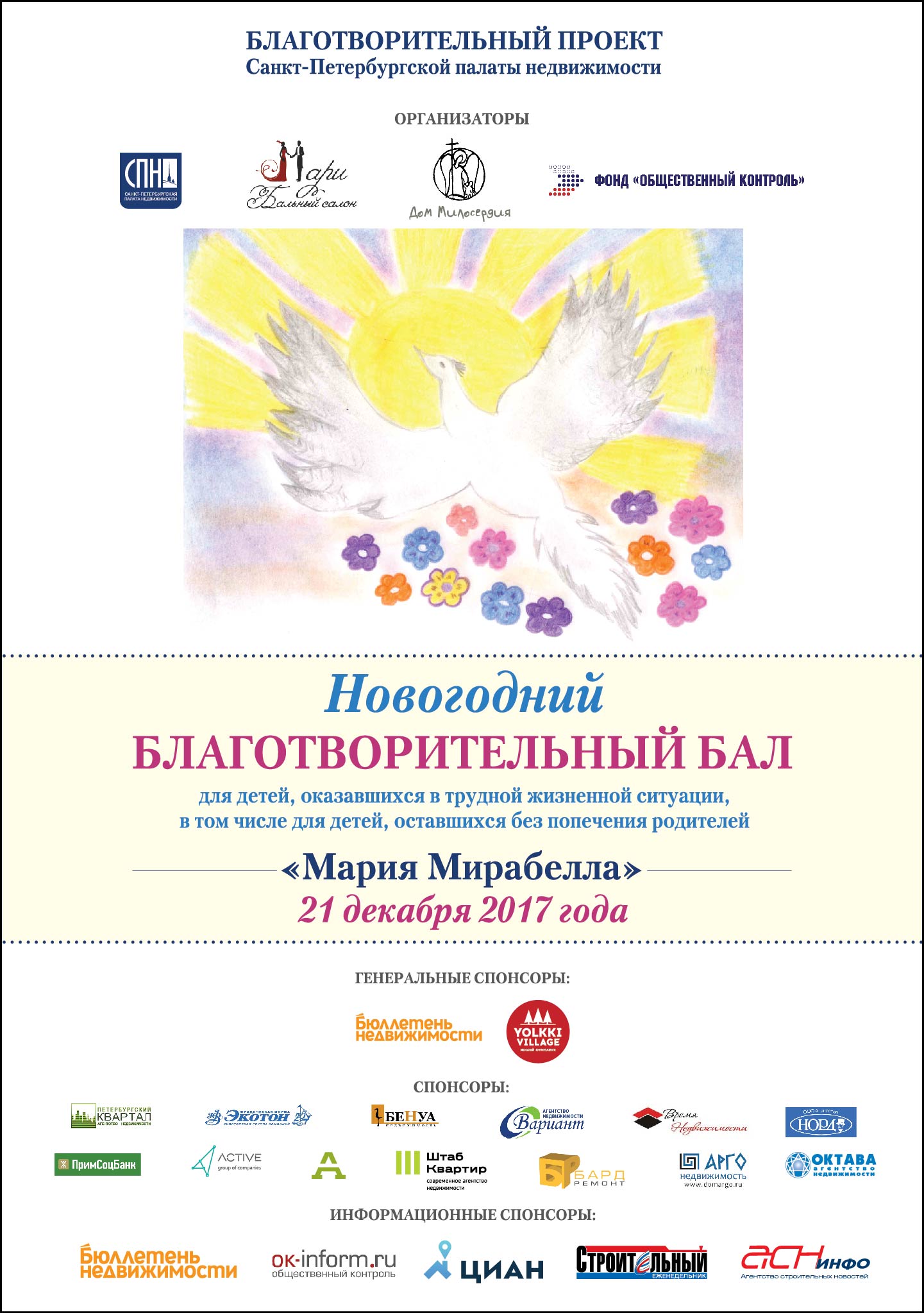 Санкт-Петербургская палата недвижимости объявляет о начале подготовки уникального мероприятия – Первого благотворительного детского бала для воспитанников Санкт-Петербургского «Дома милосердия» – который состоится 21 декабря 2017 года.